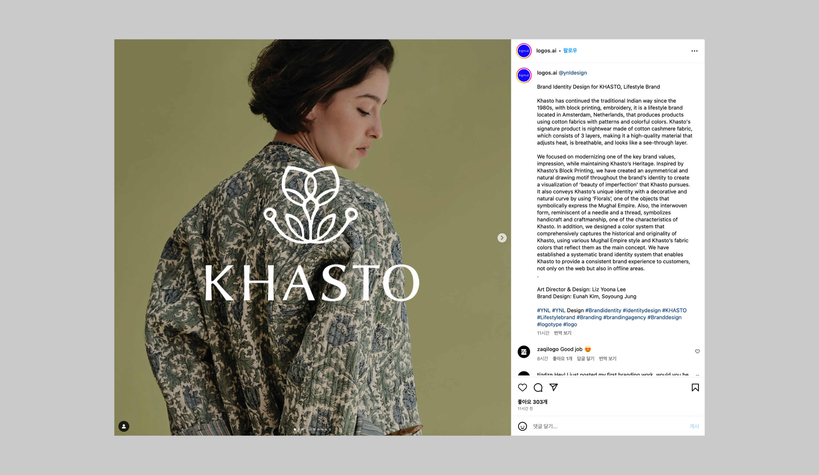 61.2K Fllowers를 지니며, 전 세계 브랜딩, 로고 & 디자인 영감을 소개하는 인스타그램 '@logos.ai'에서 'KHASTO(카스토)' Branding 프로젝트가 소개되었습니다.