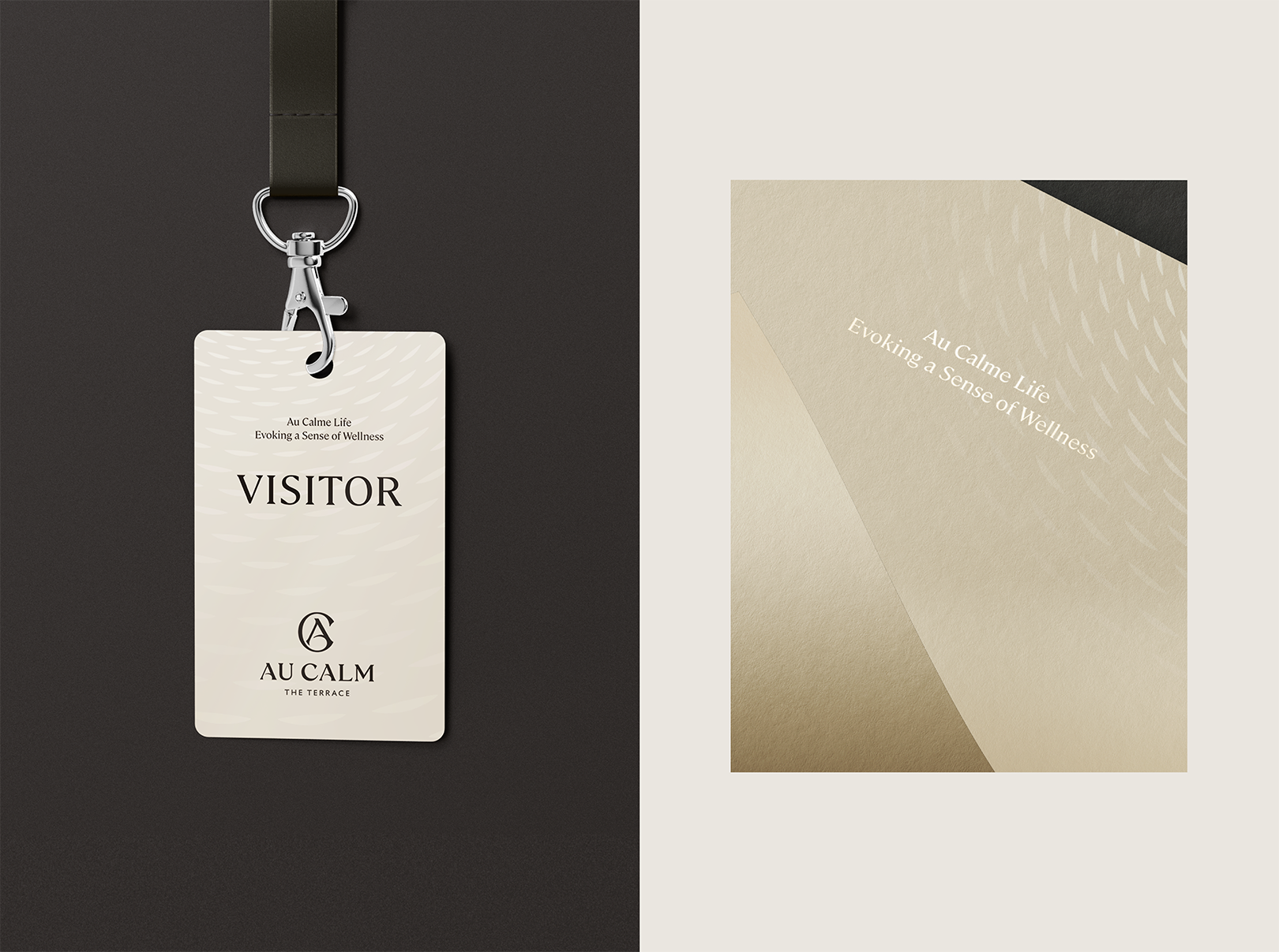 YNL defined the brand essence of Elcru Au Calm with the sentence “Au Calme Life Evoking a Sense of Wellness.” Based on this, YNL developed a brand identity that captures the essential value of Elcru Au Calm. The C-shaped monogram symbol surrounding the initial A symbolizes the vision of Elcru Au Calm, which is to invite the rich beauty of nature into a living space and inspire life. The wide serif of A, which reflects the terrace space, the characteristic of the building, expresses the lifestyle of Elcru Au Calm that adds leisure to daily life. The curved horizontal stroke that completes A refers to a high-quality residential experience, care-fully designed for the convenience of residents. The logotype of Elcru Au Calm expresses the open space and leisure that embraces the richness of nature. It also represents the value of thoughtful consideration with high-quality details. The combination of beige, light brown, and dark brown colors, reminiscent of warm sunlight and shadows, and the elegant gold express the warm hospitality and affluence of the brand. The graphic motif developed on the concept of ‘hospitality of light’ expresses the experience of wellness pursued by the brand as a wave of light that extends into customers’ lives. The wave of light used at vari-ous touchpoints, including the welcome package and billboard, brings vitality to the brand. It expresses the identity of Elcru Au Calm, which provides inspiration and tranquility to life in emotional and visual language.