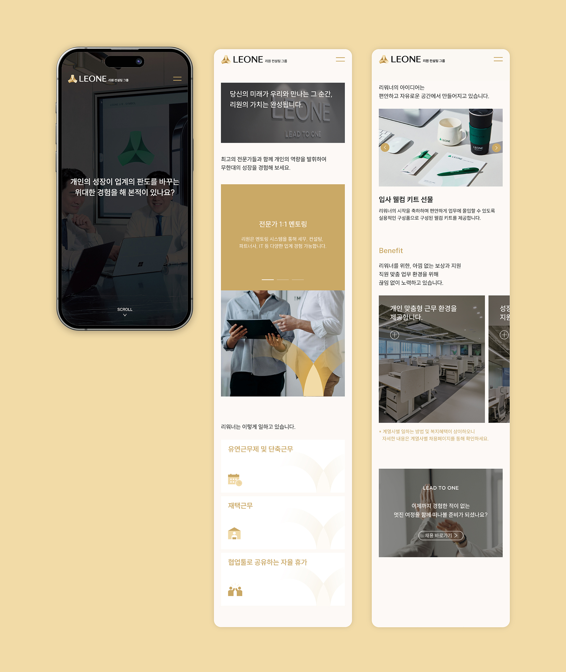 LEONE Consulting Group aimed to develop a user-friendly and convenient website based on a brand identity that reflects values of mutual growth with its clients. To effectively communicate the brand’s core values and vision, video content was utilized to provide a branded experience. Emphasizing a trustworthy consulting image, bronze was chosen as the primary color.