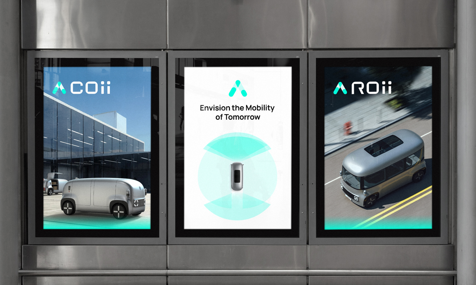YNL Design은 ROii와 COii의 차량 외관의 부드러운 곡선, 독특한 헤드라이트 모양, 넓고 편안한 실내 공간의 특성을 반영한 BI 디자인을 통해 브랜드의 안전하고 편리한 미래 모빌리티의 가치를 표현했습니다. 주목성이 높고 생기 넘치는 Mint Blue를 차량 외관과 내부 디스플레이에 활용하여 정보 전달력을 높였으며, 편안하고 따스한 감성을 연출합니다. 고객 경험에 집중한 BI 디자인은 혁신적인 자율주행 기술의 가치를 친근하고 긍정적인 브랜드 이미지로 전달합니다. ROii와 COii의 심볼과 로고타입, 컬러는 지속 가능한 디자인 시스템을 통해 다양한 경험을 연결하여 더 나은 세상을 만드는 자율주행 차량의 브랜드 경험을 강화합니다.