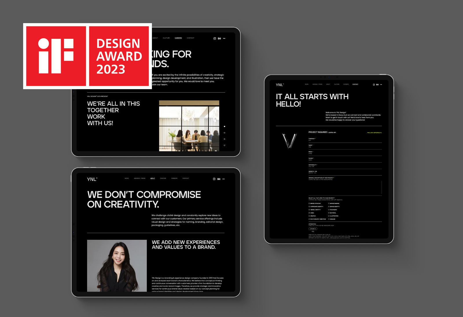 YNL Design is an award-winning branding & experience design company based in Seoul, Korea. We have achieved awards from the world's three major design awards: Red Dot Design Award, iF Design Award and IDEA.