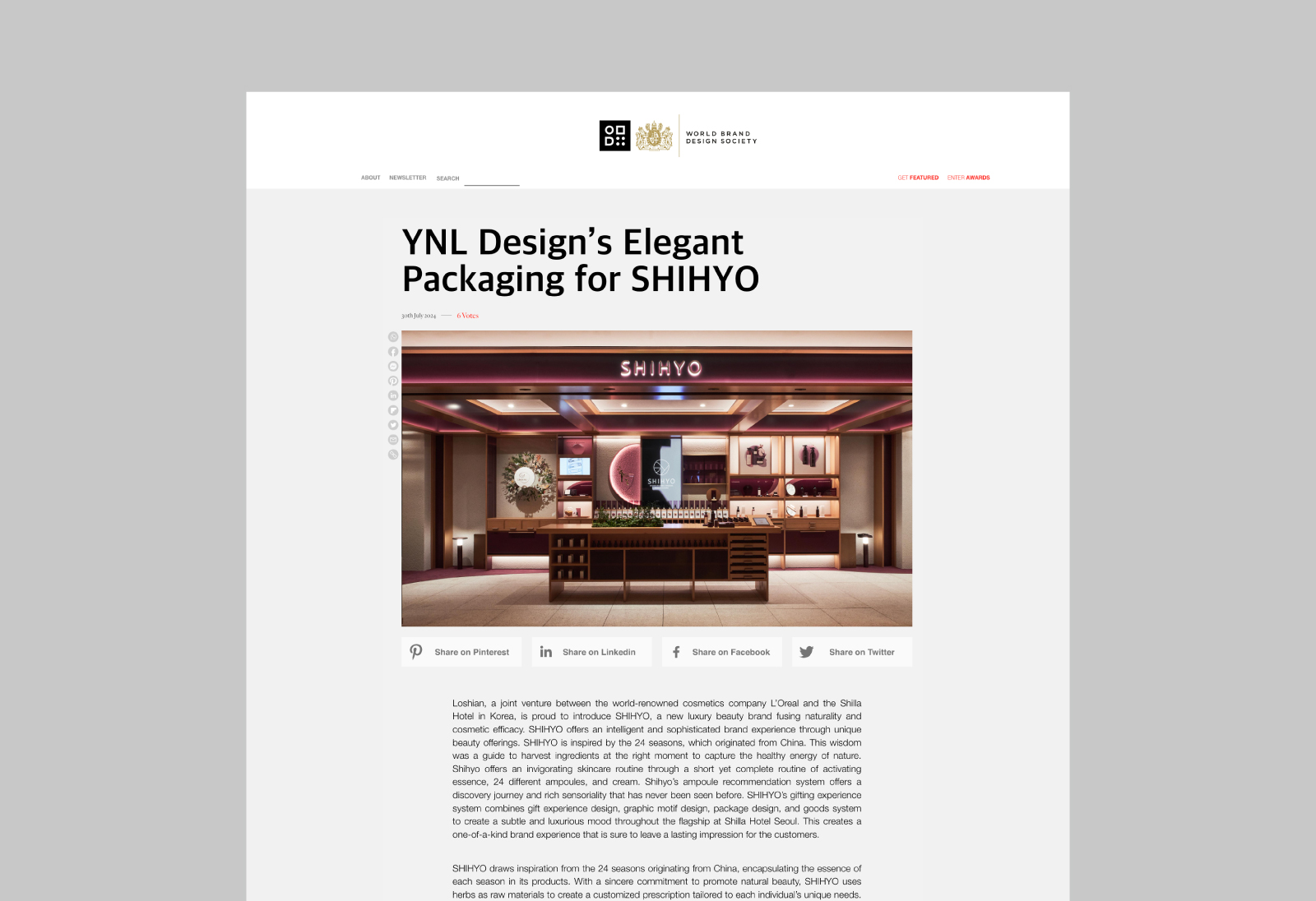 전 세계 모든 브랜드 디자인을 소개하는 디자인 플랫폼 'WORLD BRAND DESIGN SOCIETY'에서 YNL Design의 ‘SHIHYO Gift Experience Design(시효 기프트 경험 디자인)’ 프로젝트가 소개되었습니다.