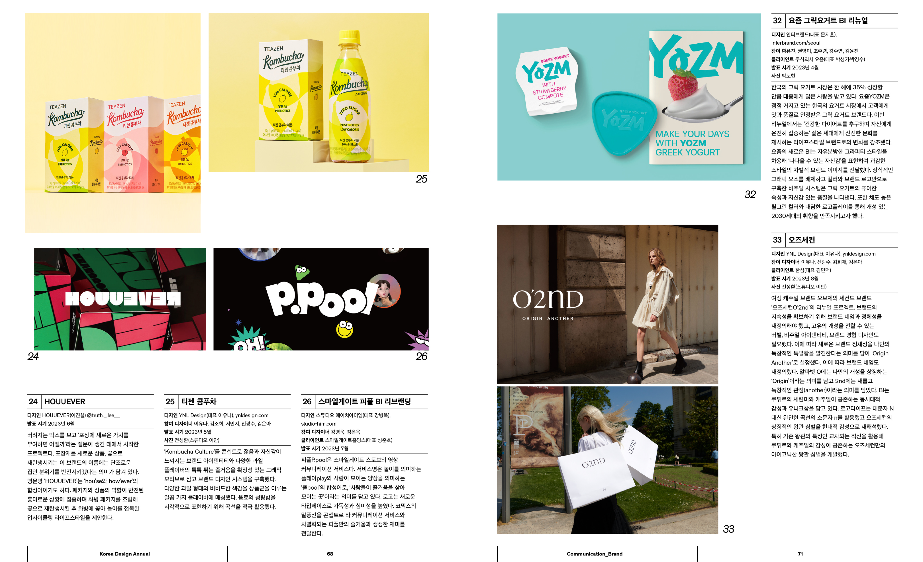 월간 디자인에서 매년 진행하는 ‘월간 디자인 2023년 12월 호 - 2023 한국 디자인 연감’에서 YNL Design의 ‘TEAZEN Kombucha (티젠 콤부차)’과 ‘O'2ND (오즈세컨)’가 Brand Identity 프로젝트가 소개되었습니다.