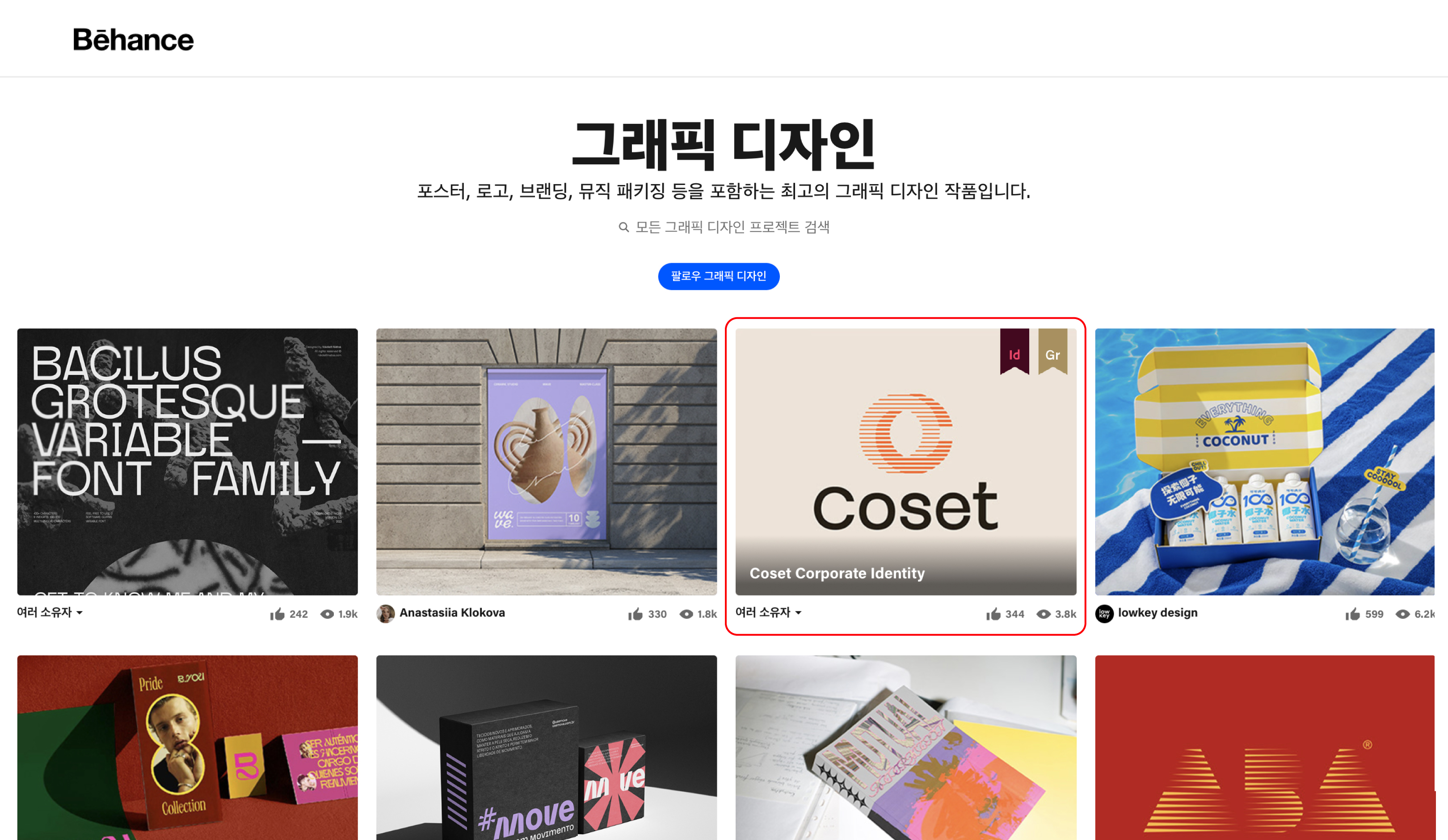 어도비크리에이티브 클라우드로 전세계의 저작한 작품 등을 전시하고 검색할 수 있는 BEHANCE(비핸스)에서 YNL Design의 ‘COSET Corporate Identity (코셋 기업 아이덴티티)’이 최고의 그래픽 작품으로 선정되었습니다.
