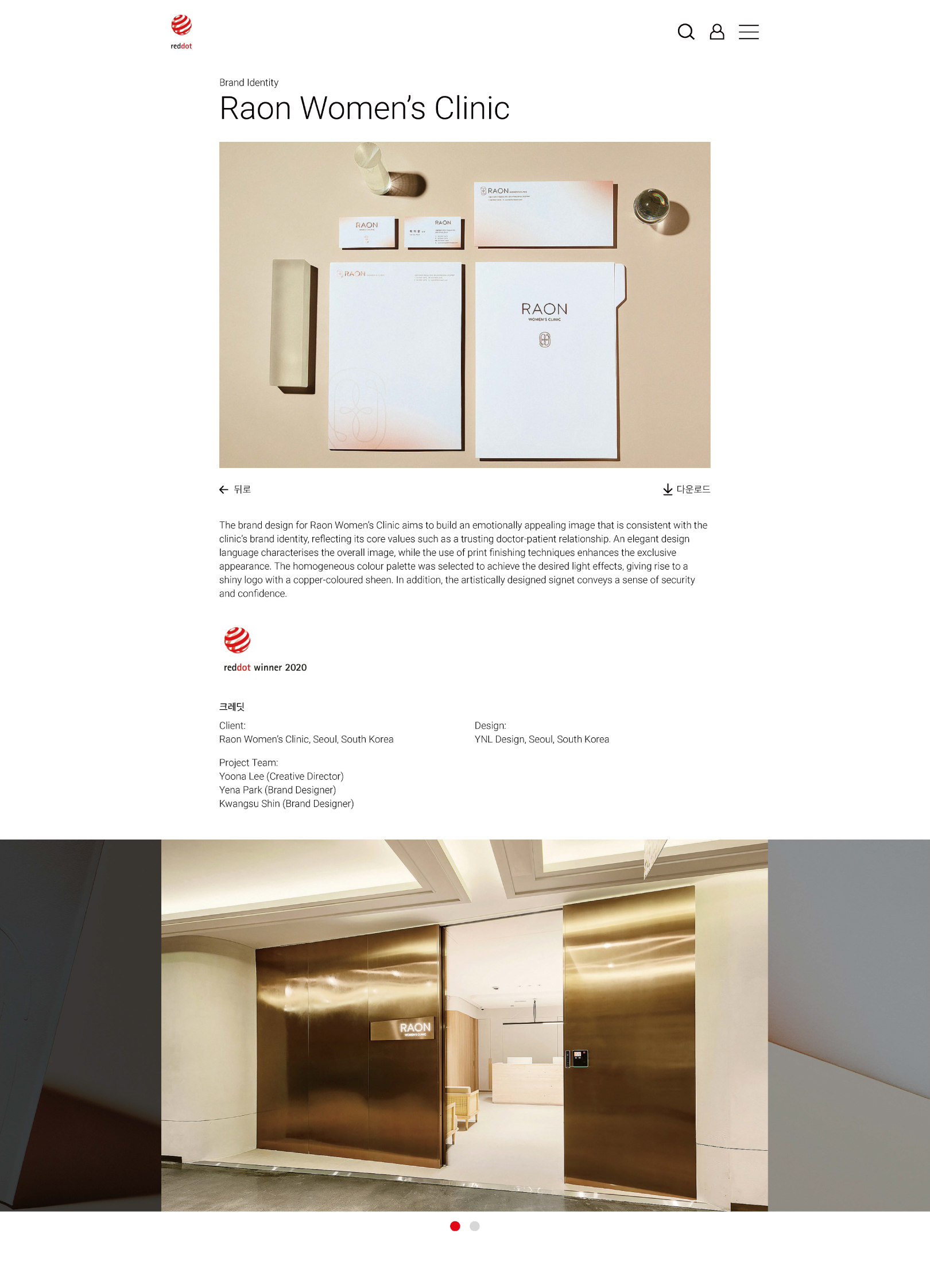 YNL Design의 ‘wonderaum (원더라움)’과 ‘RAON WOMEN’S CLINIC(연세라온산부인과)'Brand Identity 프로젝트가 독일 ‘reddot design award 2020 (2020 레드닷 디자인 어워드)’ Brand & Communication 부문에서 본상 (WINNER, 위너)을 수상하였습니다.