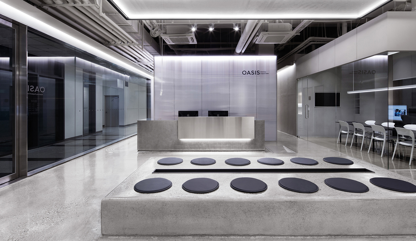 YNL Design developed various application designs such as the OASIS Veterinary Surgical Center's brand identity, drug envelops, forms, and pictograms for each room. The simple logo that harmonizes with the minimalist interior was inspired by the Mobius strip, embodying the concept of unity between a companion and a dog. It means infinite sincerity and love and captures the will of the veterinary hospital to approach customers friendlily. The pictogram design for each room was developed into a witty design by expressing the appearance of various dogs and cats according to the room's characteristics.