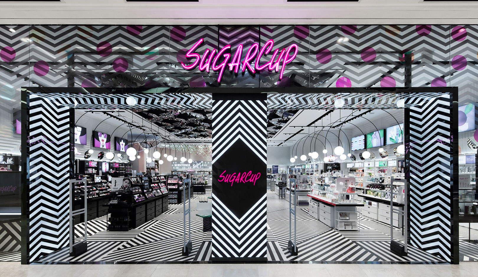 SUGARCUP의 워드마크는 가장 Beauty스러운 공간 구현, 매력적인 공간 속에서 “Beautify myself”를 표현하고 있습니다. 그리고 블랙, 화이트, 네온 핑크의 강력한 패턴 모티브는 기존 드럭스토어와 가장 차별화 되는 공간을 표현합니다. 메이크업바, 옴므존, 아이브로우존, 카운셀링존, 향수존, 마스크팩존, 클렌징 존 등 다양한 포인트 ZONING으로 살아있는 매장 구성을 위하여 카테고리별 사이니지 개발이 이루어졌습니다. 또한 메이크업의 아름다움을 나타낸 감성적인 그래픽 아트웍 개발을 하여 매장 내의 화려한 터치포인트로 스토리텔링을 더했습니다.