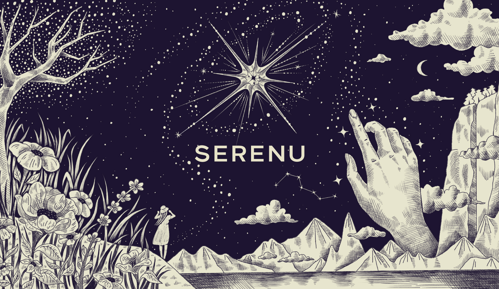 YNL Design developed a concept illustration that embodies SERENU's brand values and worldview and planned to effectively express it in the VIP invitation. The illustration depicts the landscape of SERENU, a space where one can find their true light, and conveys a dreamy and mysterious feeling by incorporating surrealist elements. The illustration visualizes the planet and orbit graphic, one of SERENU's key visuals. This allows SERENU BLACK to expand and demonstrate the brand's worldview more concretely as part of SERENU, not an independent project. For the VIP invitation, the act of opening the invitation was reinterpreted as entering the SERENU planet. The cover of the invitation features the image of the SERENU planet, and the interior depicts the starry landscape depicted in the concept illustration, accompanied by a message containing the story and a VIP card. By receiving the invitation, the customer is invited to the impressive story of finding their own light in SERENU BLACK.